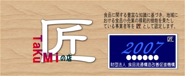 『匠制度』は、地域の食品小売業活性化を図る観点から、食品に関する豊富な知識に基づき、地域における食品小売業の模範的機能を果 たしている店舗・事業者を選定し、食料品小売業界の人材育成の中核的指導者として、地域の食品小売業者等への講演、研修生や店舗見学等の受け入れ(講演、研修生や店舗見学の受け入れは任意)により食料品小売業界の振興を図ることを目的としています。
